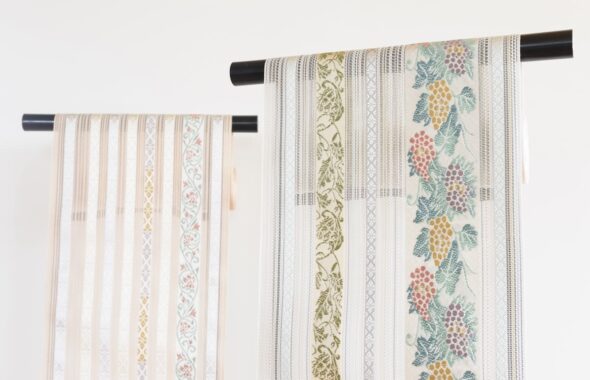 袋帯、佐賀錦、紋八寸なごや帯、紗八寸なごや帯、男帯、小袋帯など幅広く出品され、各メーカーとの特色やその時々のトレンドなど、一度にご覧いただけるイベントとなっています。
