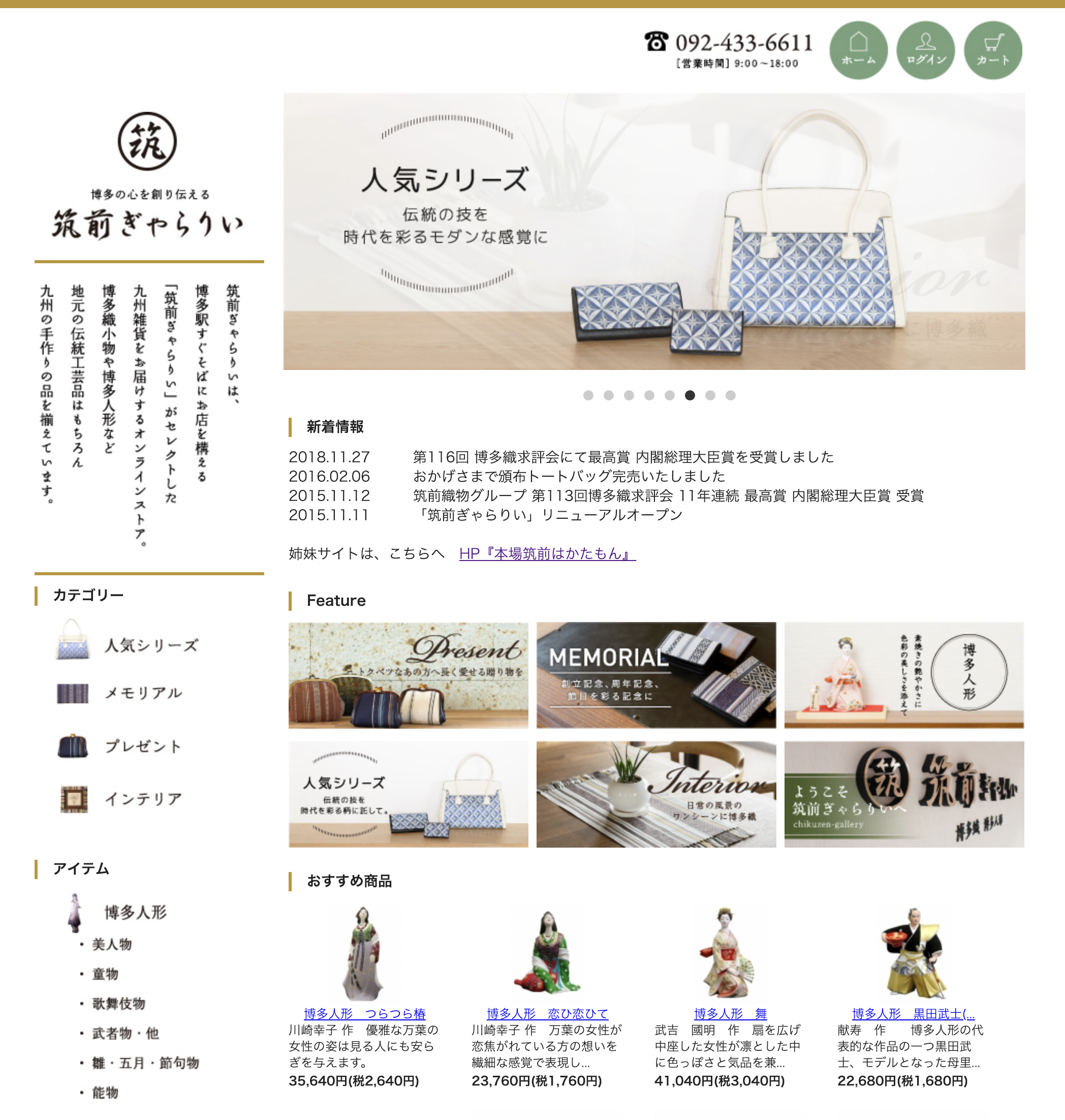 オンラインショップ「筑前ぎゃらりい」は、博多駅すぐ側に店舗を構える「筑前ぎゃらりい」がセレクトした九州雑貨をお届けするネット通販ショップです。博多織小物や博多人形など、伝統的工芸品だけでなく、九州雑貨,made in Japanのものを厳選してお届けします!